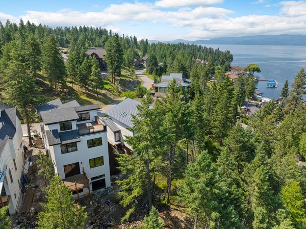Positioned to capture peekaboo views of Flathead Lake and the surrounding mountains, this home features two expansive rooftop decks facing southwest and northwest, perfect for enjoying sunrises, sunsets, and year-round lake views. An additional patio deck nestled among the trees offers a retreat for outdoor dining and summer evenings by the grill.